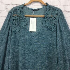 Bloomchic Sweater Women's Plus 22/24 Heathered Teal Lace Inserts Business Casual
