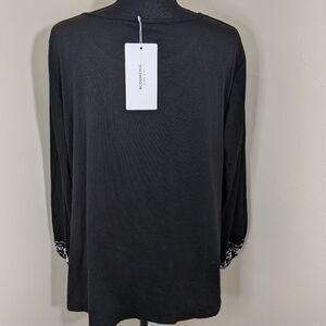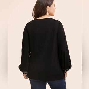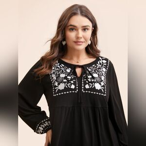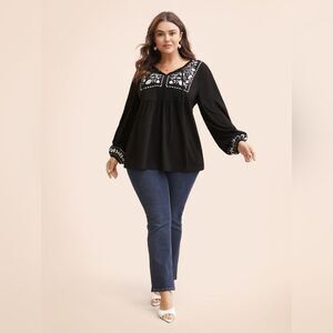 Bloomchic T-Shirt Floral Embroidered Knot Neck Lantern Sleeve US Size 12