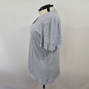 Bloomchic T-Shirt Women's Large Plain Ruffle Sleeve Heather VNeck Light Blue NWT