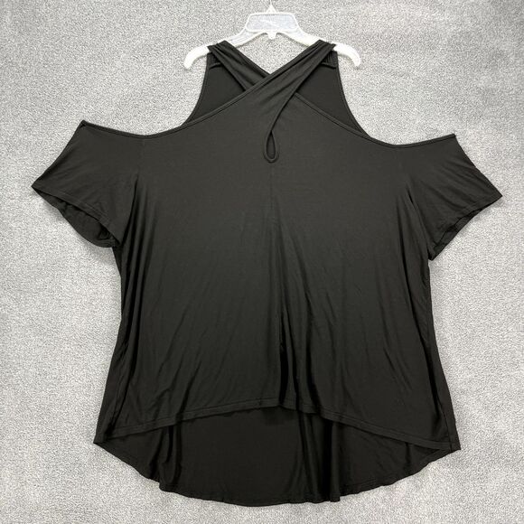 Bloomchic Top Womens Plus 26 4X Black Cold Shoulder Blouse Pullover high low