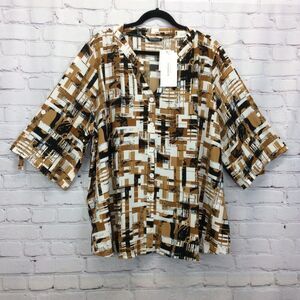 Bloomchic Tunic Womens Plus 22/24 Abstract V Neck Roll Tab Sleeve Faux Button Up