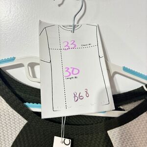 @@shadenac22 hi! This item is new with tag, no itchy at all. Material content is polyester and spandex. It’s oversized pit to pit is 32-33. Dolman sleeve style she does run oversized by the style. Thank you