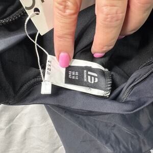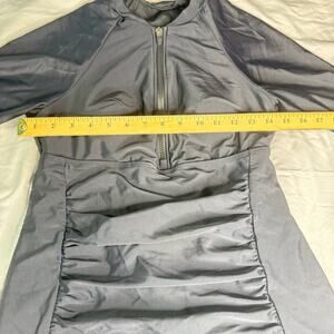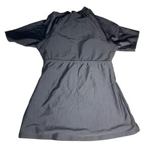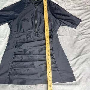 Bloomchic Women's sz 12 Black Swim Top Zip Short Sleeve Built In Bra Ruched NWT