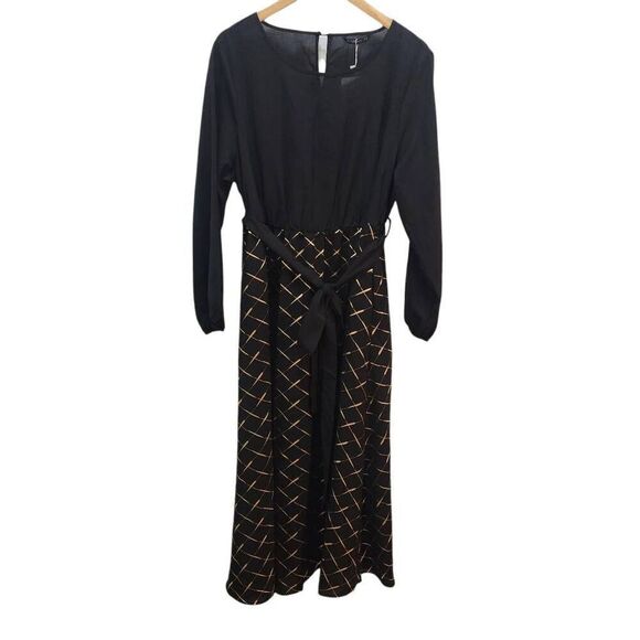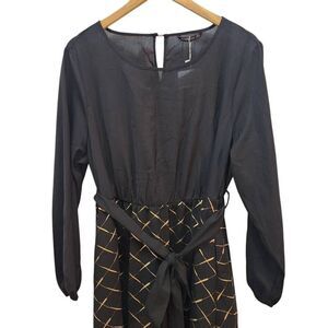 Bloomchic made for curves black dress with metallic gold design belted XL 14-16