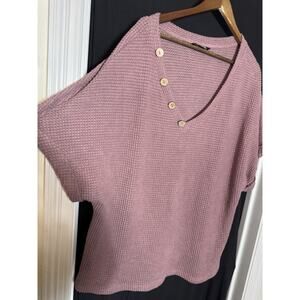 Bloomchic pink Waffle Knit Half Sleeve Button Details Top boho cottage 22 24