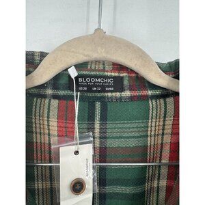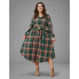 Bloomchick Plaid Arc Hem Midi Dress Women Plus SZ 28 Green Red Button Front NEW