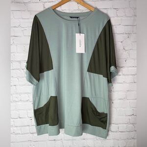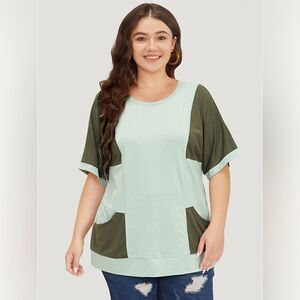Bloomchick Two Tone Dolman Sleeve Patched Pocket T-Shirt 22-24