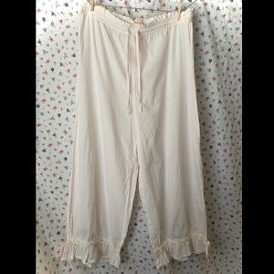 Beautiful vintage style light pink bloomers with lace details and ribbon draw Strunk ankles. Tag says small but will fit medium or large easy.