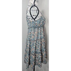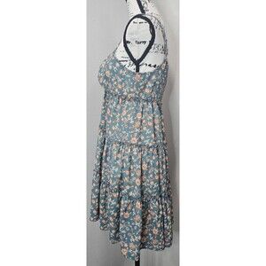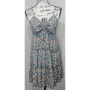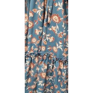 Bloomfield A-Line Floral Teal Brown Cream Spaghetti Strap Ruffled Sundress Large