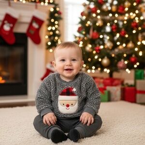 Bloomin Baby Fuzzy Christmas Sweater 0/3 Months Santa Clause Appliqué Soft