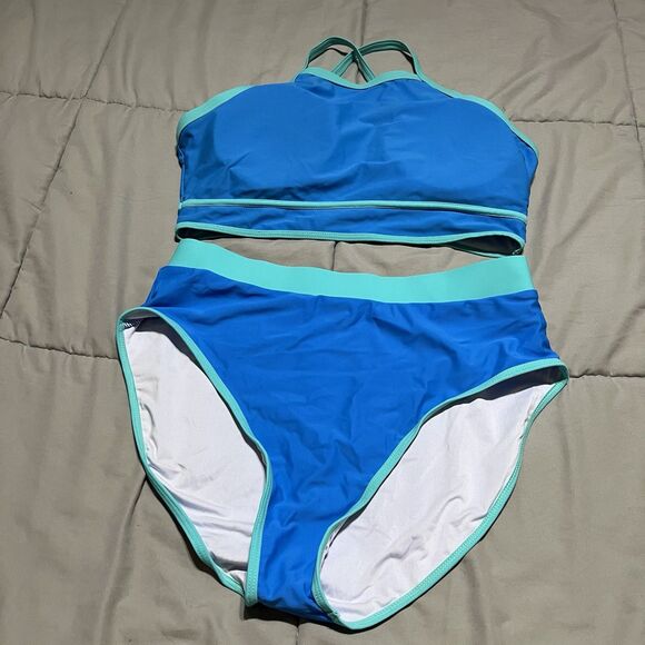 Blooming Jelly Blue Colorblock High Waist 2 Piece Padded Bikini Swimsuit Size XL