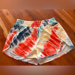 Vibrant and stylish tie-dye shorts perfect for casual outings. Features a comfortable fit with an elastic waistband. Add a splash of color to your wardrobe with these eye-catching shorts.