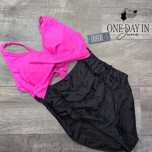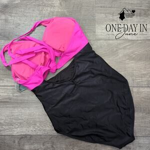 Blooming Jelly Cross Front Cut Out Tie Back One Piece Swimsuit Size L