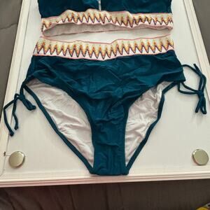 Blooming Jelly Green Padded Trimmed Drawstring Bikini Swimsuits NWT Size XL