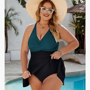 Blooming Jelly Women Plus Size Swim Dress Swimsuit One Piece Tummy Control Bathing Suits Modest Criss Cross Swim Suit