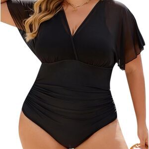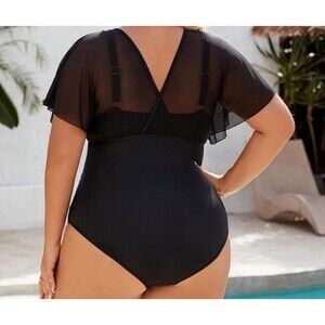 Feature: Plus size swimsuit for women features with v neck and mesh butterfly sleeves design, soft full lining provides additional skin protection. Adjustable straps and removable padded bras, make it fit well while being elegant and flaterring.