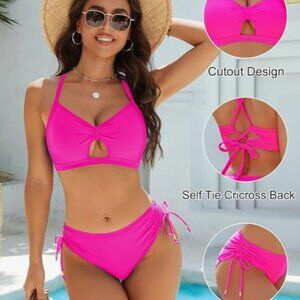 Bikini Top: This two piece swimsuits for women with a v neck and curvy cutout design, features adjustable self tie criss cross back, removable built-in bra pads, provide a comfortable and secure fit
