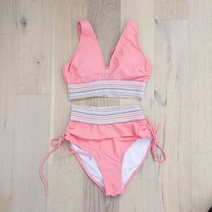 Blooming Jelly Womens Bikini set Size M Pink Knit Swimwear Boho High Waist