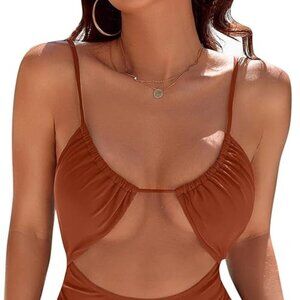 FLATTERING CUTOUT - Featuring a scooped neckline and front and back cutouts, one piece bathing suit combines style with functionality. Adjustable spaghetti straps and a hook back closure ensure a perfect fit. Flattering silhouette ends in cheeky fit bottoms that accentuate your curves.