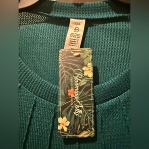 Blooming Jelly Women's Waffle Knit Top Dark Cyan Lace Sleeve New with Tag