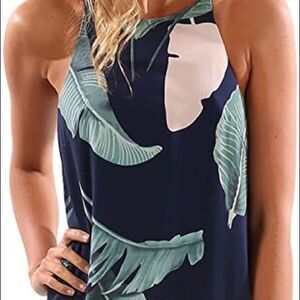 Blooming Jelly Navy Tropical Print sleeveless popover Dress