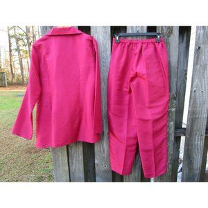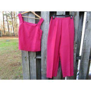 Bloomingdale 3 piece 100% Silk Red Pant Jacket Top Suit Set Size 8 retails $310