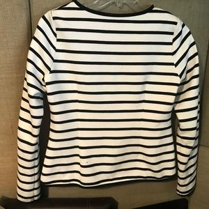 90% cotton 10% stretch short fitted blazer with hook n eye closure(4), 2 pockets , fitted seams in back.,, shoulder pads, small mark on left backside, sleeves not lined and are extra long,,sleeve length 25", back length 23'", front is 24 " shoulder down, jacket is cut to dip down in front,.,aside from the back spot, great condition seller is not busty gal non-smoking home