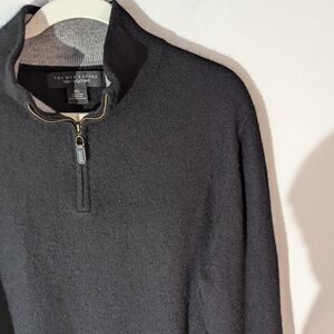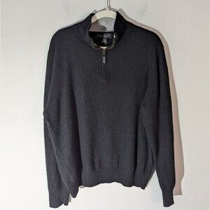 Bloomingdales 100% Black Cashmere Quarter Zip Long Sleeve Sweater Men's Size XXL