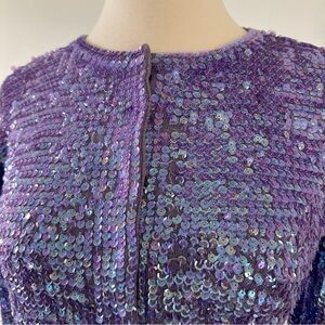 Bloomingdale’s 100% Silk Sequins Purple Cardigan Sweater