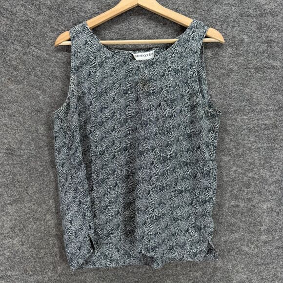 Bloomingdale's Blouse Women 14 Gray Geometric Silk Sleeveless Wide Strap Casual
