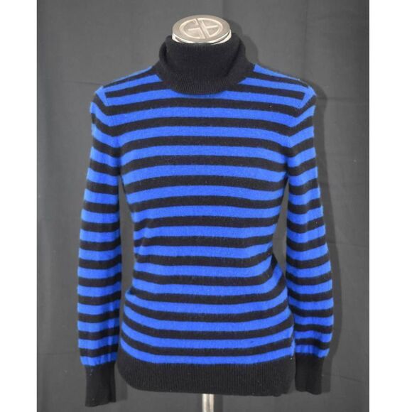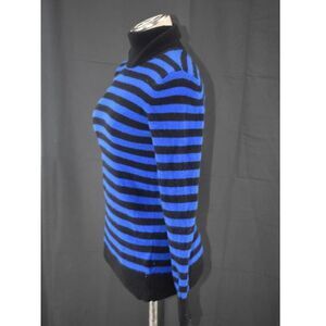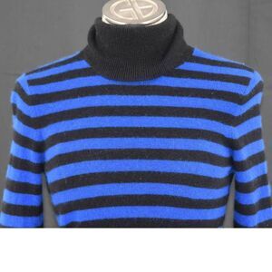 Bloomingdale's Cashmere Black and Blue Striped Turtle Neck Sweater - M