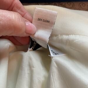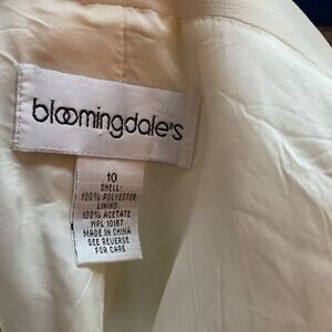 The Bloomingdale's Cream Single Button Lined Blazer is a stylish and versatile outerwear piece perfect for various occasions. Made from polyester with a solid ivory color, this short-length blazer features a button closure and is lined with acetate for added sophistication. With its regular fit and size 10, it is a flattering and comfortable option for women looking to elevate their wardrobe. Ideal for fall and spring, this blazer is a timeless basic jacket that can be dressed up for parties or worn casually for a chic look.