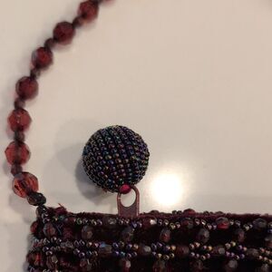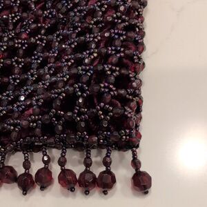 Vintage Bloomingdales Garnet Beaded Shoulder Crossbody Fringed Bag.