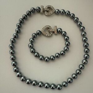 Bloomingdale’s Hematite Tone Pearl Jewelry Set – Metallic Necklace & Bracelet