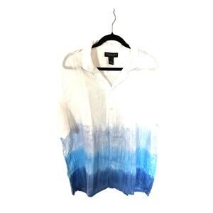 Bloomingdales Linen Tie Dyed Ombré Stripe Button Down Camp Nautical Shirt XL