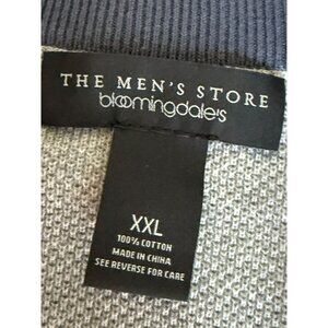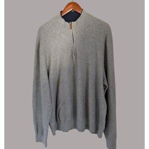 Bloomingdales Mens Gray 1/4 Zip Sweater XXL Genuine Leather Trim Cotton