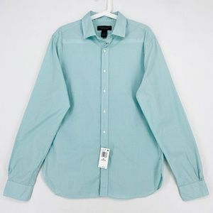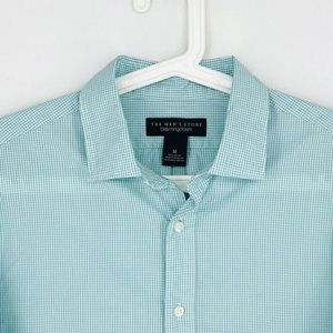 Bloomingdale's Mens Sz Medium Button Front Shirt Green White Micro Gingham Check