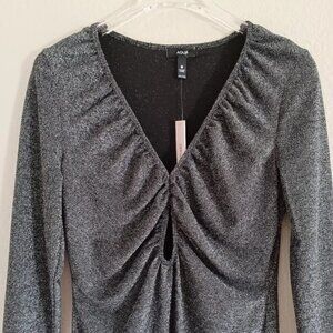 New with tags. Aqua Shimmer Mini Metallic Dress. Silver/black. Aqua for Bloomingdales exclusive.