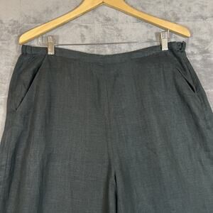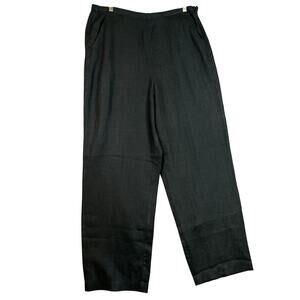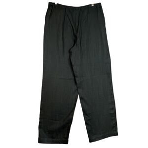 Bloomingdales Pants Womens 12 Black Linen Relaxed Wide Leg Side Zip Pockets