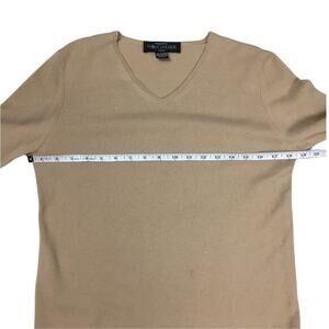 Bloomingdale's Sweater 100% Cashmere Tan V-Neck Knit Women's Medium Petite