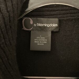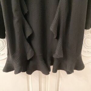 Bloomingdale’s Sweater Women's L Black Cardigan Long Ruffled Wool Cashmere Blend