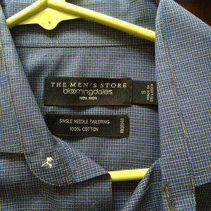 Like New, Worn once, Men's Small Blue Tailored Bloomingdales Long Sleeve Button Down Shirt