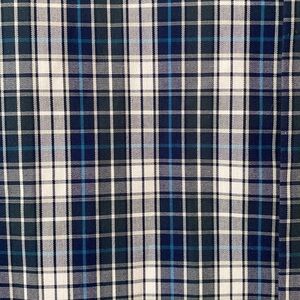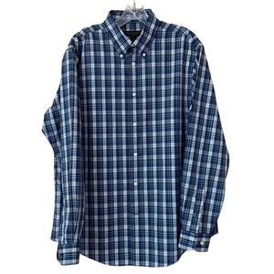 Bloomingdales The Mens Store Cotton No Iron Long Sleeve button down shirt. Great navy and white plaid. Excellent Preowned Condition Size L
