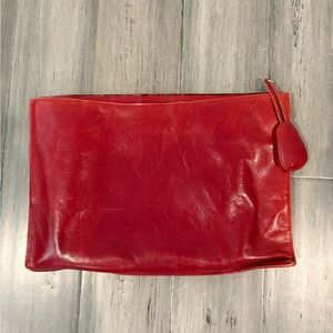 Elegant red leather clutch with a sleek design. Perfect for any occasion. 15” long by 10” high
