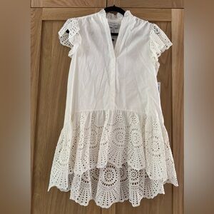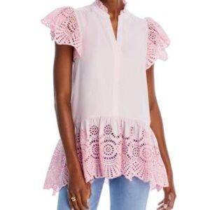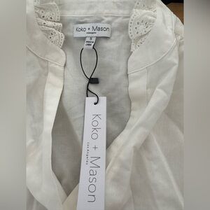 This elegant blouse from Bloomingdale's features a delicate white, highlighted by ruffled cap sleeves and an asymmetrical design. The mandarin collar adds a touch of sophistication, while the intricate lace detailing offers a romantic flair. Kiki and Mason by Bloomingdale’s