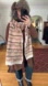 This Scarf from Bloomingdale's is constructed in 35% Rayon,30% Lambswool, 20% Nylon, 8% Cashmere, 7% Angora blend in ivory, brown and terra cotta orange wavy stripes. This c=scarf is wide and extra long. This is boho, cozy, winter, autumnal, lagenlook, coastal, neutral vibes.
