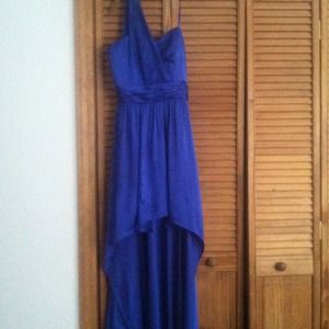 Royal Blue dress. One shoulder and silk like material. Sizes run extremely small. I'm usually a 4/6. Worn once