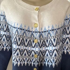 Bloomingdale's navy and white Fair Isle cardigan.