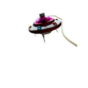 Beaming with bright colors and glittery accents, this space ship ornament is out of this world