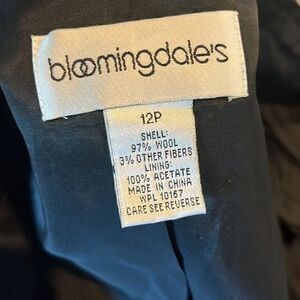 Bloomingdale’s black, white, and silver threaded wool blazer, size 12P!